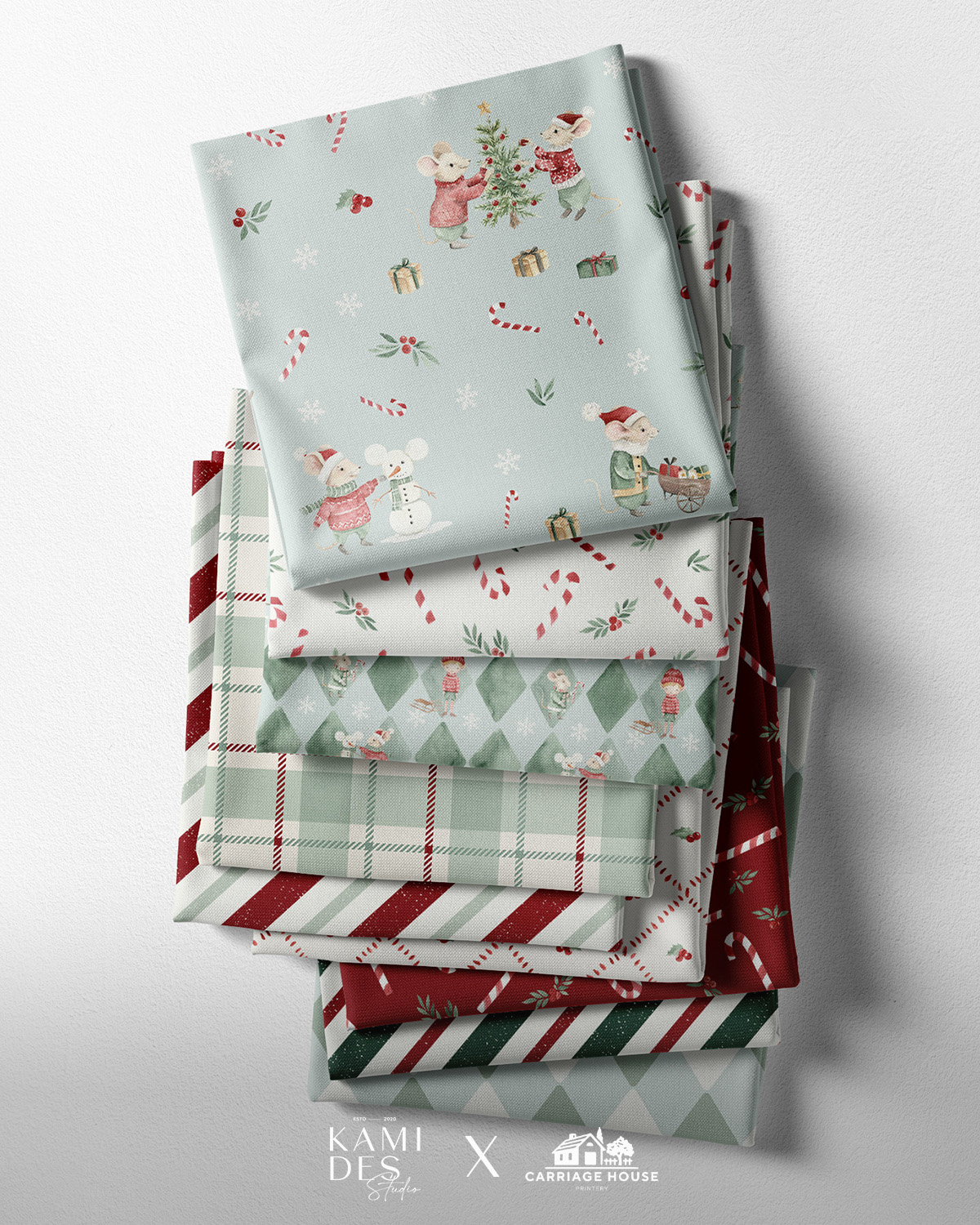 Introducing the Christmas Mouse collection, a whimsical and heartwarming fabric and home decor series inspired by the cozy charm of winter. Each design is meticulously hand-painted in watercolor, featuring enchanting mice dressed in Norwegian sweaters, preparing for the holiday season. These playful scenes—mice decorating Christmas trees, riding sleighs, and enjoying festive moments—capture the magic of winter days and holiday traditions. The soft, nostalgic palette and whimsical characters bring warmth and wonder into any space. Perfect for creating holiday crafts, kids clothing, quilts, pillows, and festive home decor, this collection is sure to inspire joy and creativity during the most wonderful time of the year.
